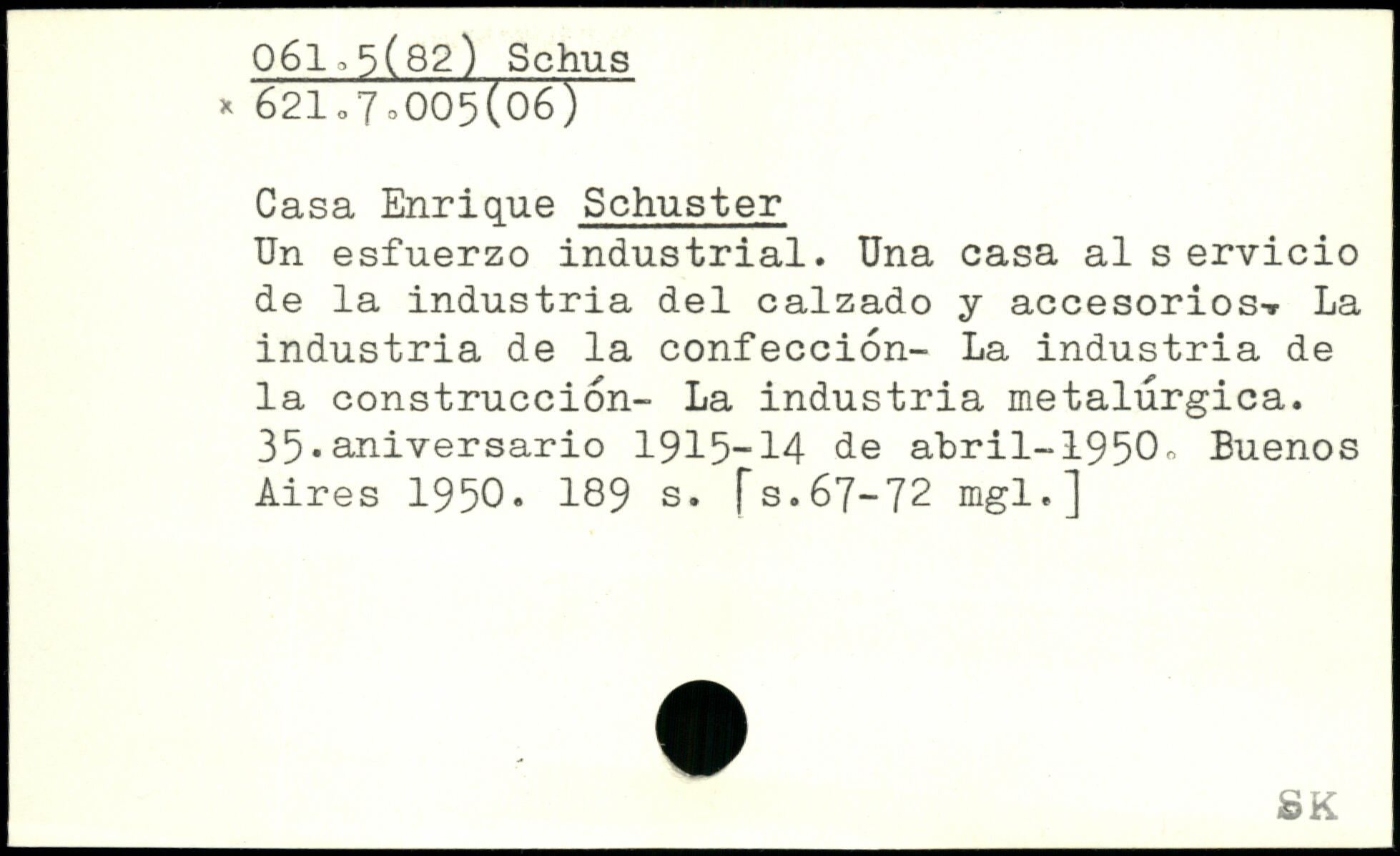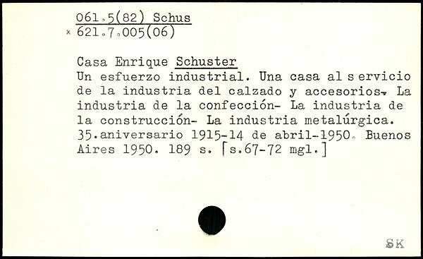 Casa Enrique Schuster Un esfuerzo industrial. Una casa al servicio de la industria del calzado y accesorios-, La industria de la confeccion- La industria de la construccion- La industria metalurgica. 35.aniversario 1915-14 de ahril-1950n Buenos Aires 1950.