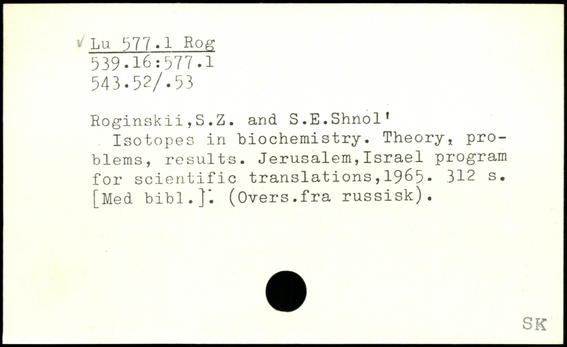 Roginskii,S.Z. and S.E.Shnol’ Isotopes in biochemistry. Theory, problems, results. Jerusalem,Israel program for scientific translations,19&5.