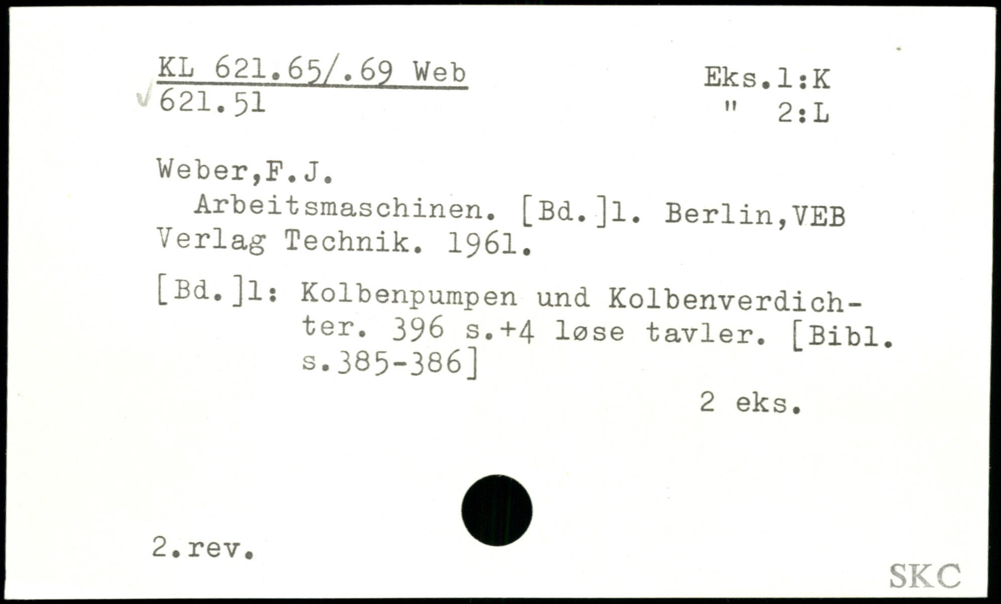 Arbeitsmaschinen. [Bd.]l. Berlin,VEB Verlag Technik. 1961. [Bd.]l: Kolbenpumpen und Kolbenverdichter.