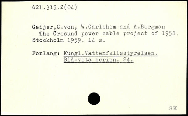 Geijer,G.von, W0Carlshem and A0Bergman The Öresund power cable project of 1958
