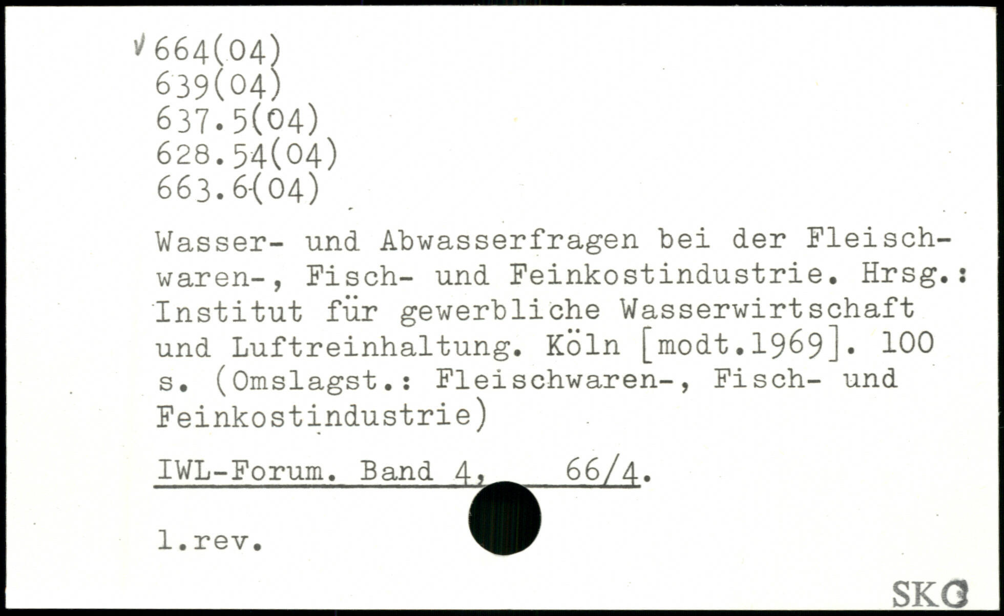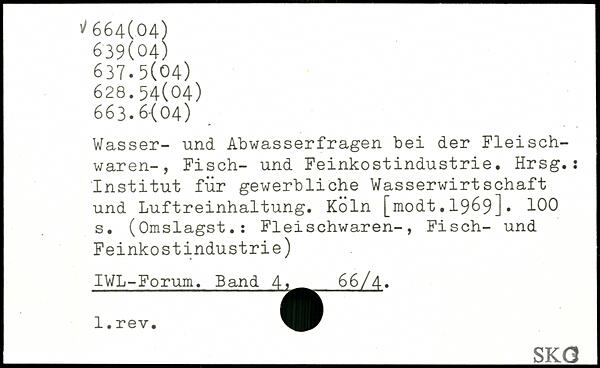 Wasser- und Abwasserfragen bei der Fleischwaren-, Fisch- und Feinkostindustrie. Hrsg.: Institut für gewerbliche Wasserwirtschaft und Luftreinhaltung. Köln [modt.1969].
