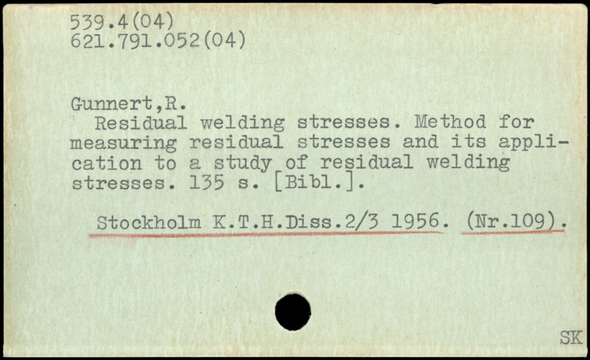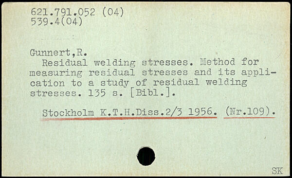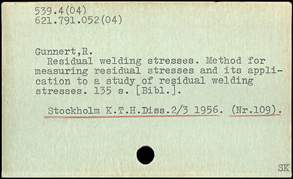 Residual welding stresses. Method for measuring residual stresses and its application to a study of residual welding stresses.