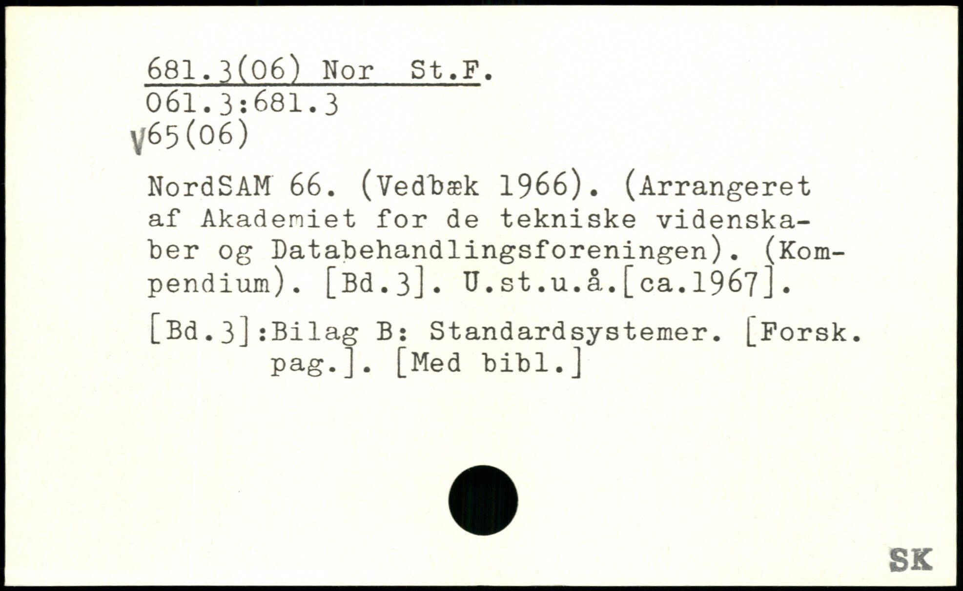 NordSAM 66. (Vedbæk 1966). (Arrangeret af Akadeniet for de tekniske videnskaber og Databehandlingsforeningen). (Kompendium). [