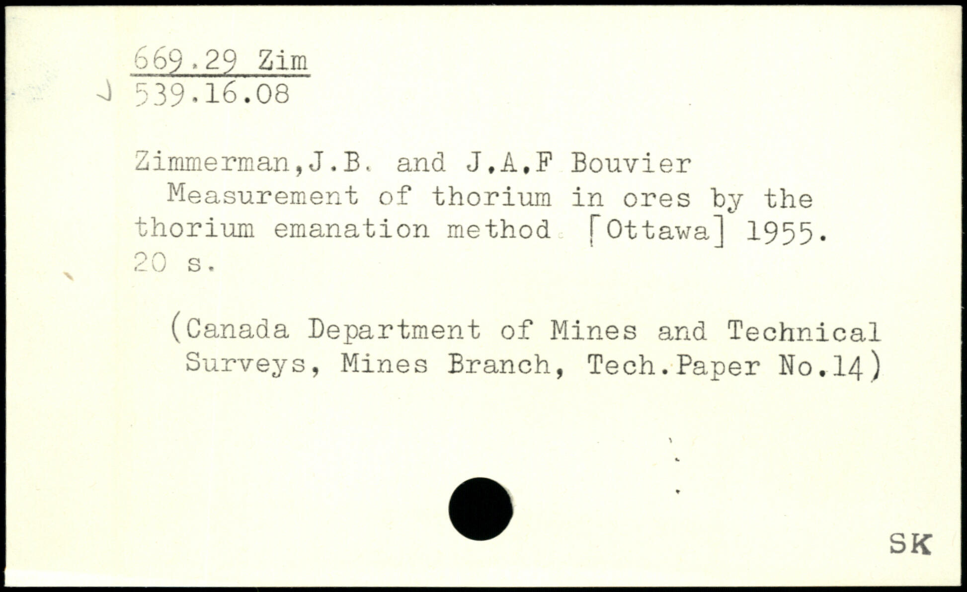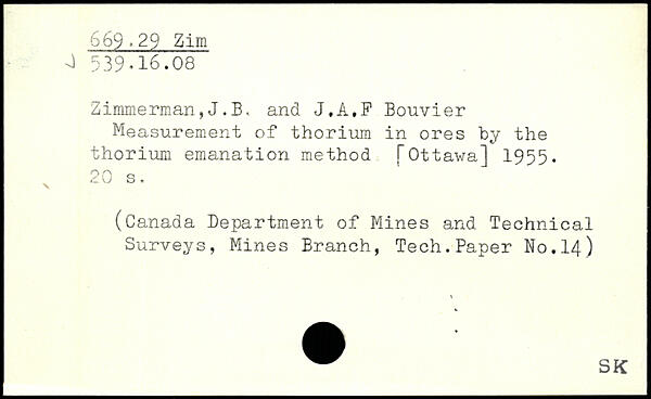 Zimmerman,J.B. and J,À,F Bouvier Measurement of thorium in ores by the thorium emanation method