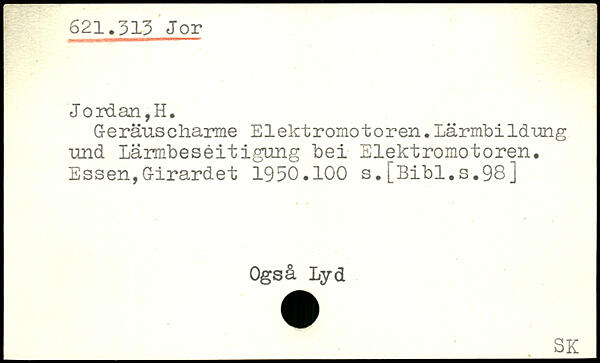 Geräuscharme Elektromotoren.Lärmbildung und Lärmbeseitigung bei Elektromotoren. Essen,Girardet 1950.