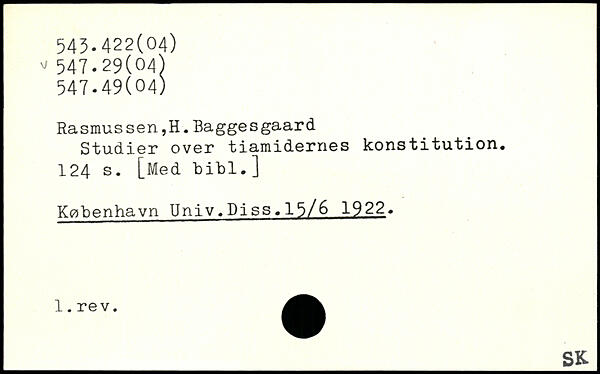 Rasmussen,H.Baggesgaard Studier over tiamidernes konstitution.