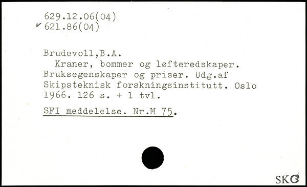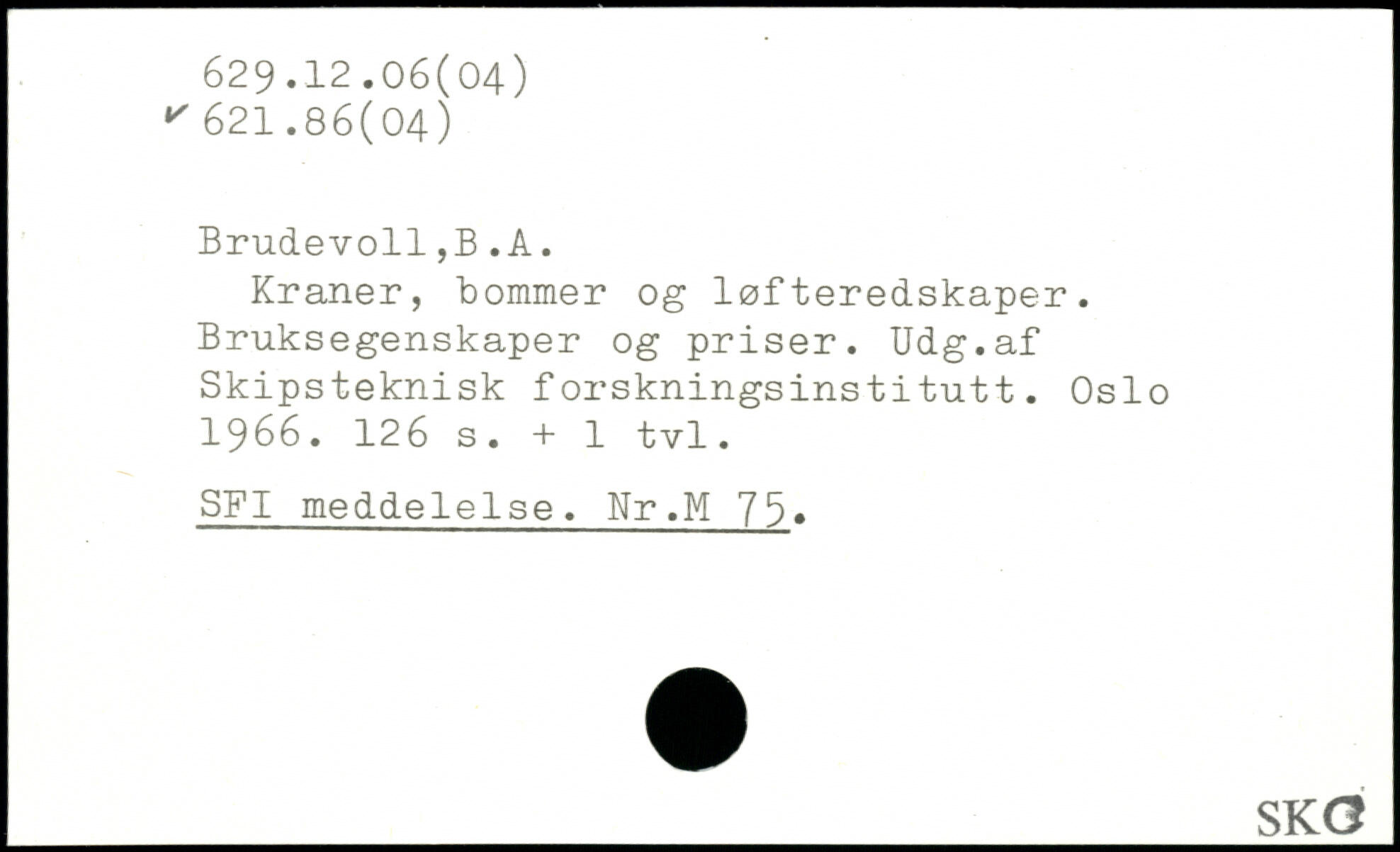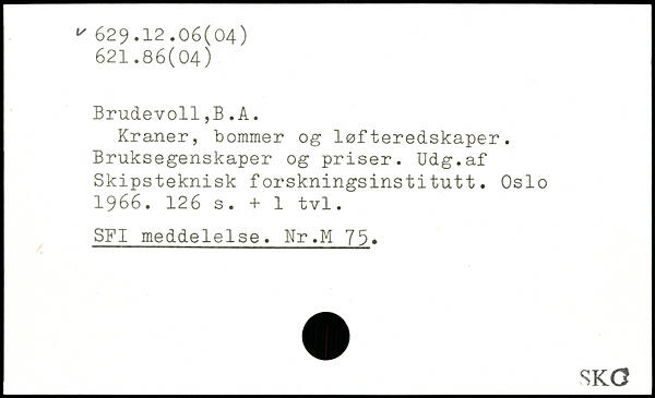 Kraner, bommer og løfteredskaper. Bruksegenskaper og priser. Udg.af Skipsteknisk forskningsinstitutt. Oslo 1966.