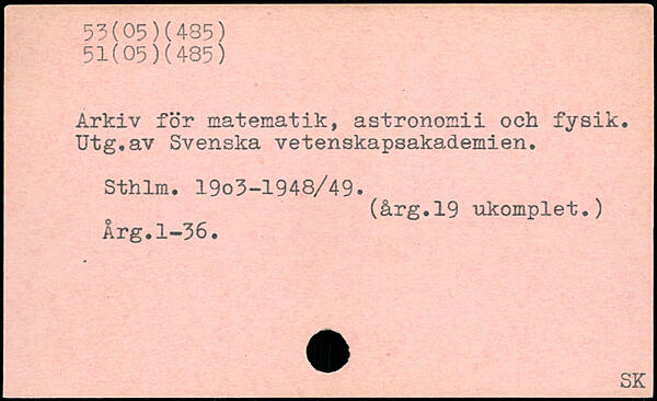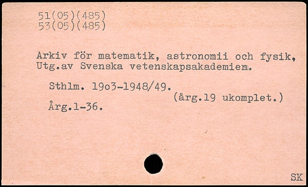 Arkiv för matematik, astronomii och fysik. Utg.av Svenska vetenskapsakademien. Sthlm. 19o3-1948/49.