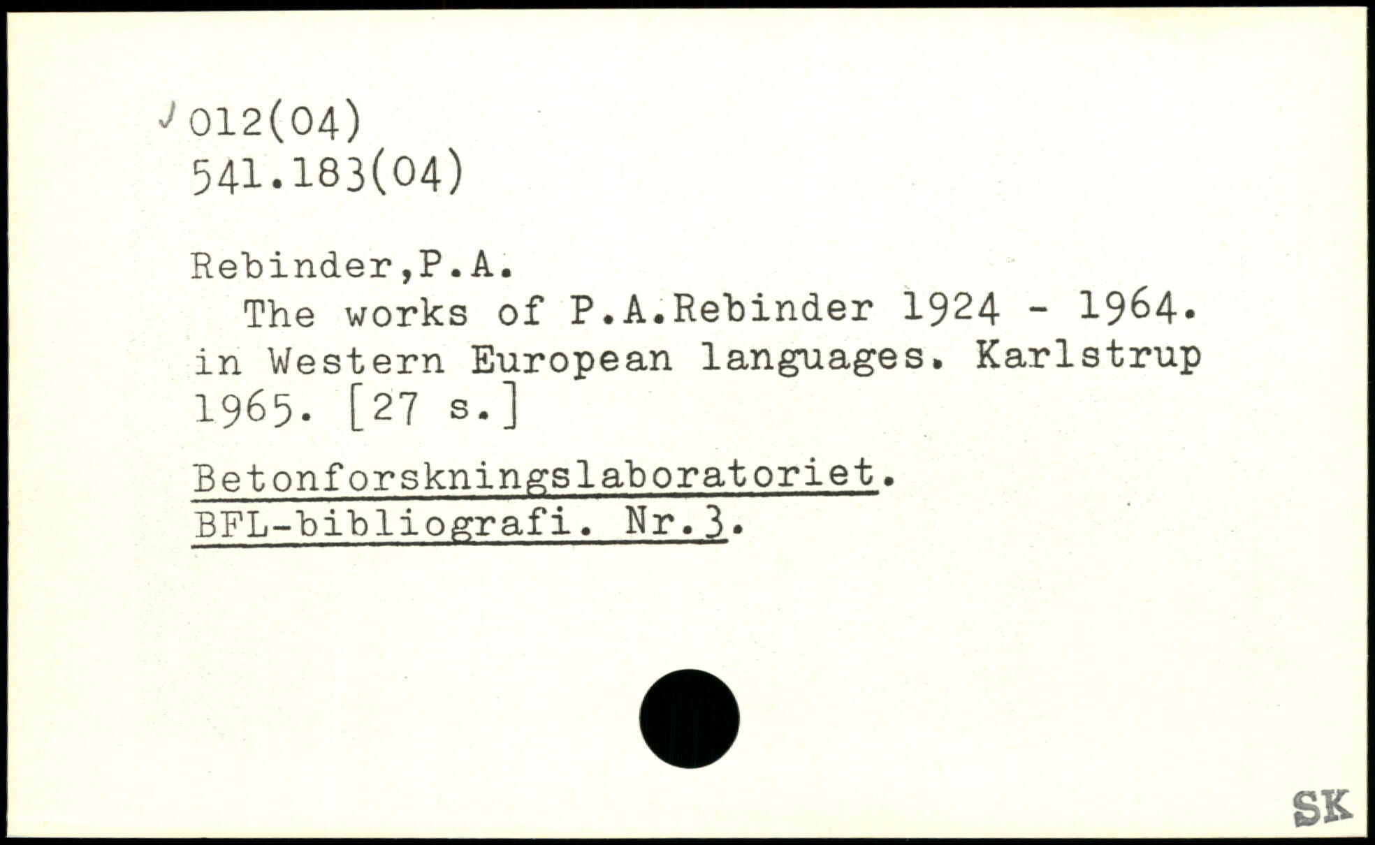 The works of P.A.Rebinder 1924 - 1964, in Western European languages. Karlstrup 1965. [