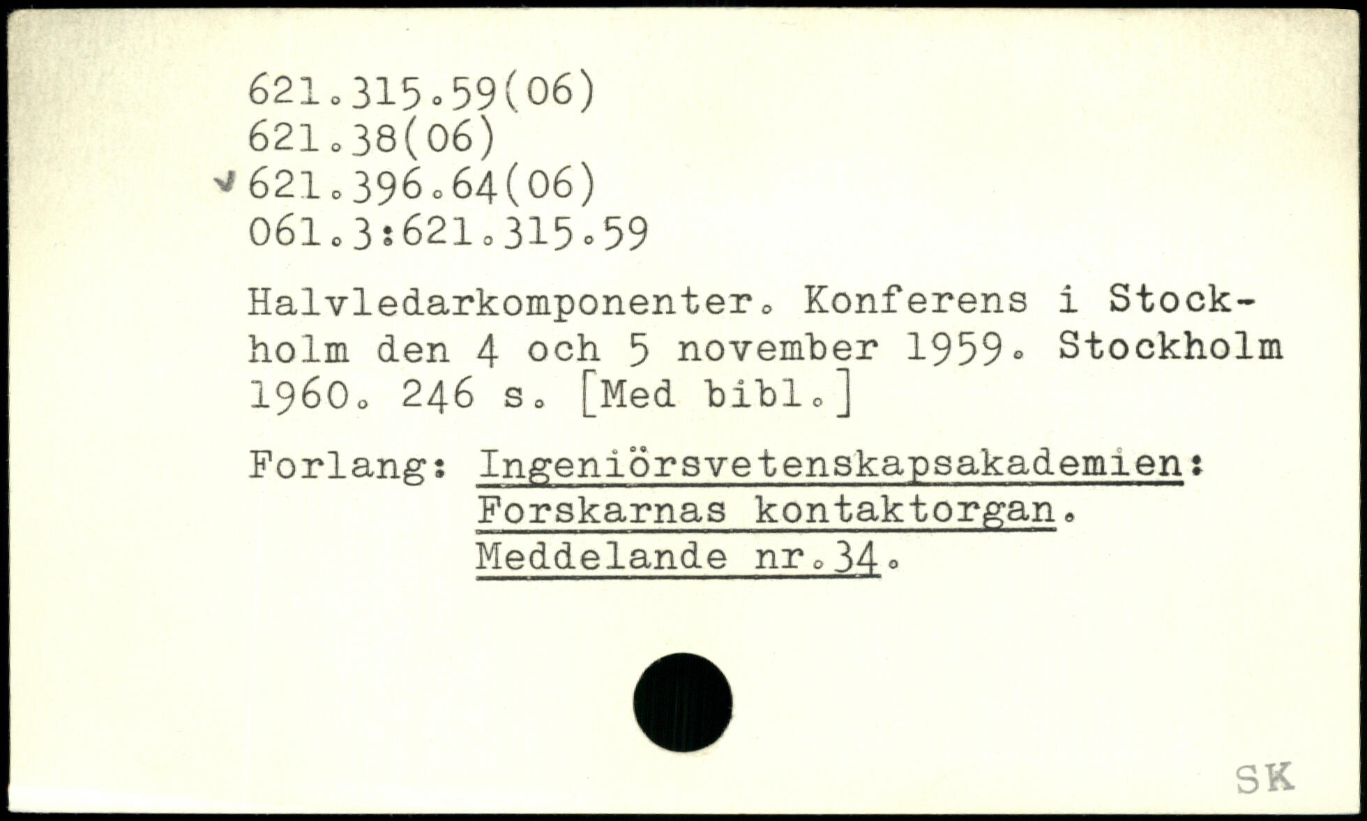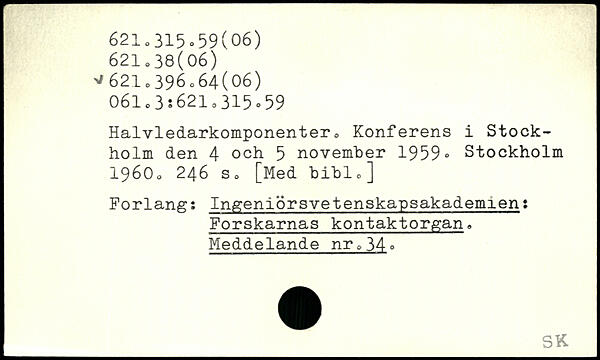 Halvledarkomponenter. Konferens i Stockholm den 4 och 5 november 1959