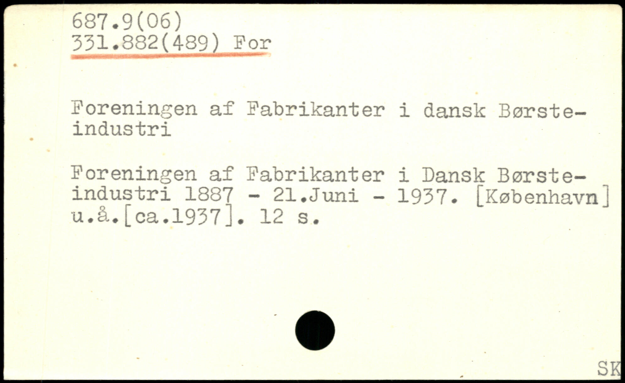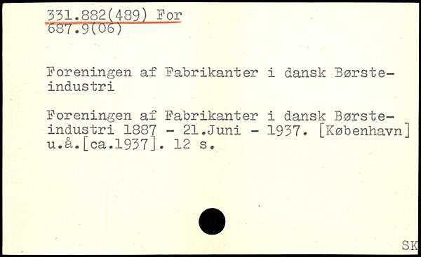 Foreningen af Fabrikanter i dansk Børsteindustri Foreningen af Fabrikanter i dansk Børsteindustri 1887 - 21.Juni - 1937.