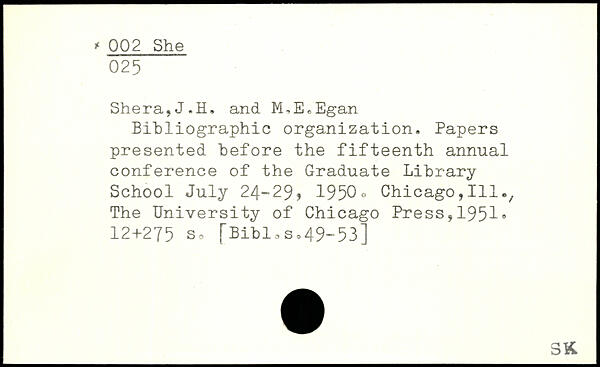 Bibliographic organization. Papers presented before the fifteenth annual conference of the Graduate Library School July 24-29, 1950o Chicago,111.t The University of Chicago Press,1951