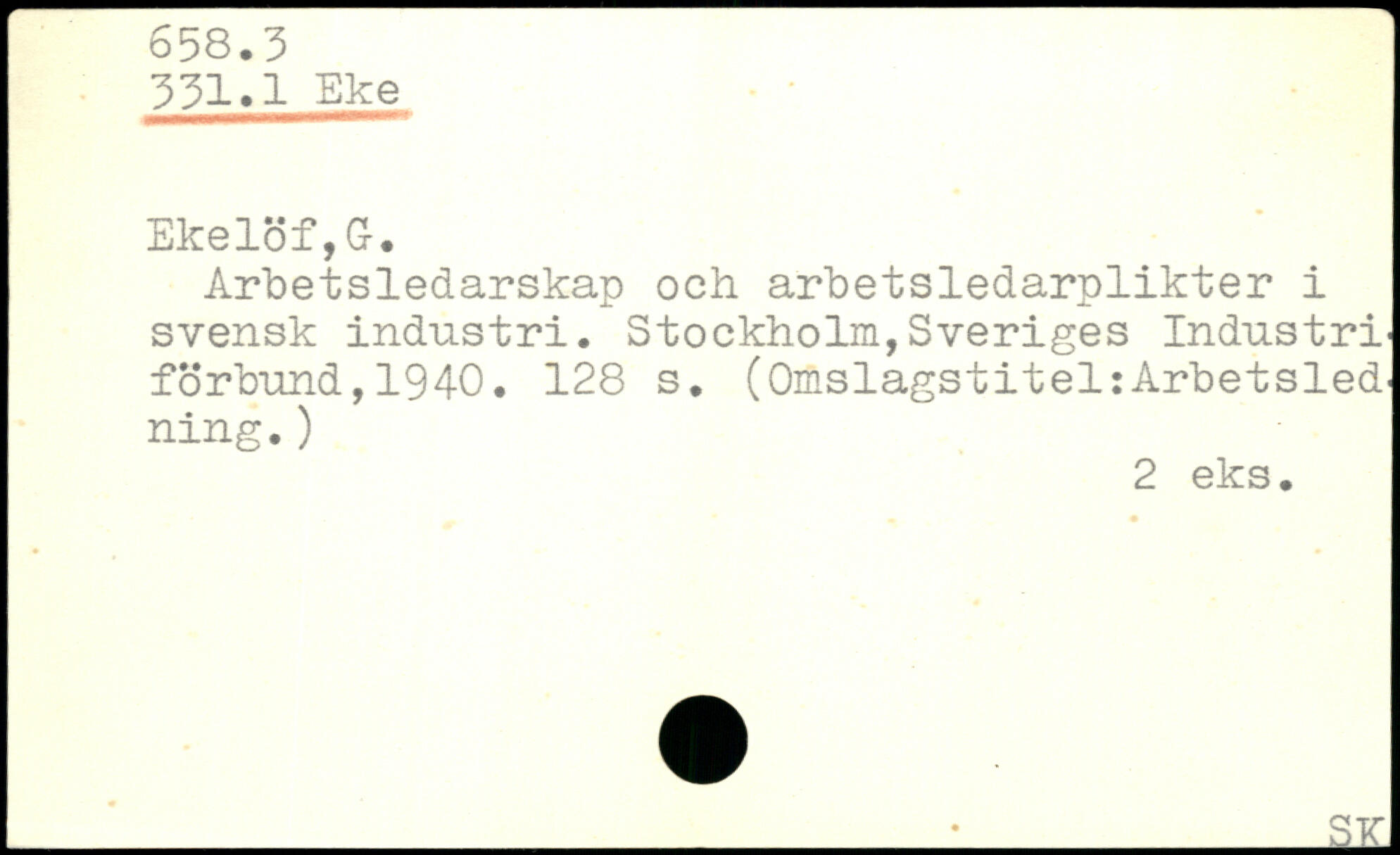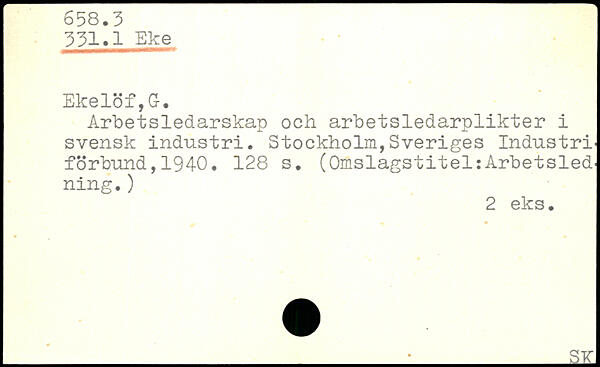 Arbetsledarskap och arbetsledarplikter i svensk indiistri. Stockholm, Sveriges Industri' förbund,1940.
