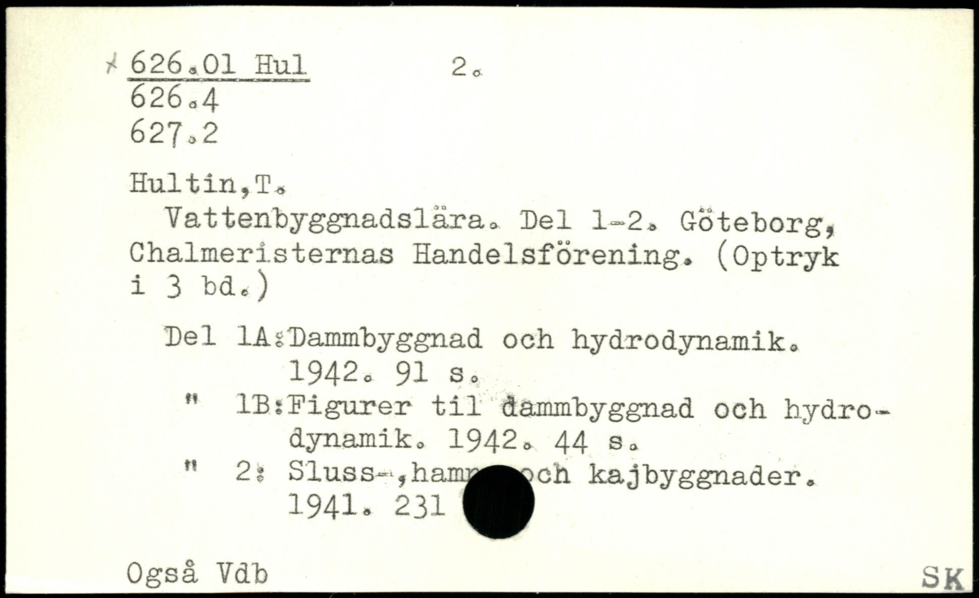 Vattenbyggnadslära<> Hel 1-2, Göteborg, Ghalmeristernas Handelsförening. (Optryk i 3 bd.) Hel lAgHammbyggnad och hydrodynamik. 1942