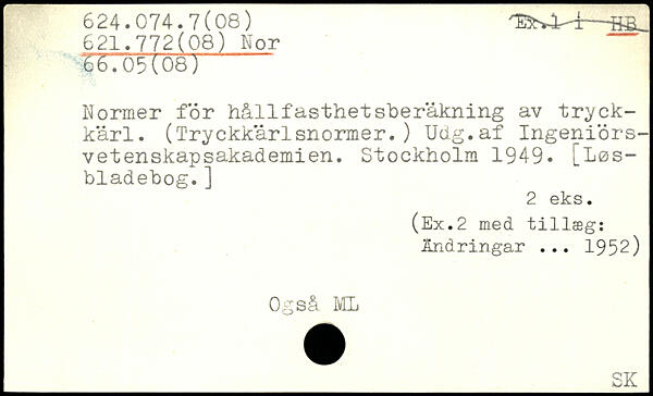 Normer för hållfasthetsberäkning av tryckkärl. (Tryckkärlsnormer.) Udg.af Ingeniörs-vetenskapsakademien.