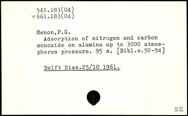 Adsorption of nitrogen and carbon monoxide on alumina up to 3000 atmospheres pressure.