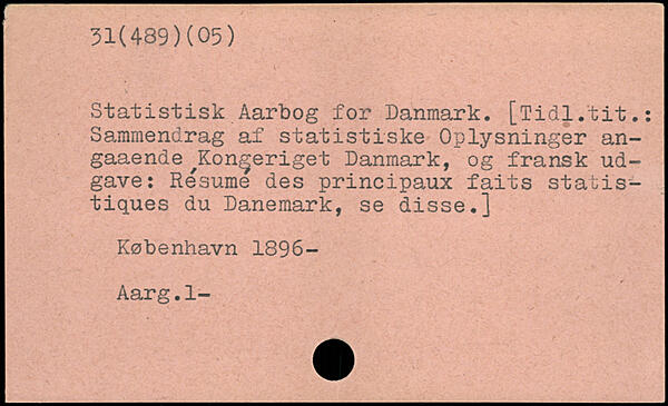 Statistisk Aarbog for Danmark. [Tidl.tit.: Sammendrag af statistiske Oplysninger an-gaaende ^Kon^eriget Danmark, og fransk udgave î Resume des principaux faits statistiques du Danemark, se disse.]