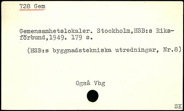 G-emensamhetslokaler. Stockholm,HSB: s Riksförbund,1949.