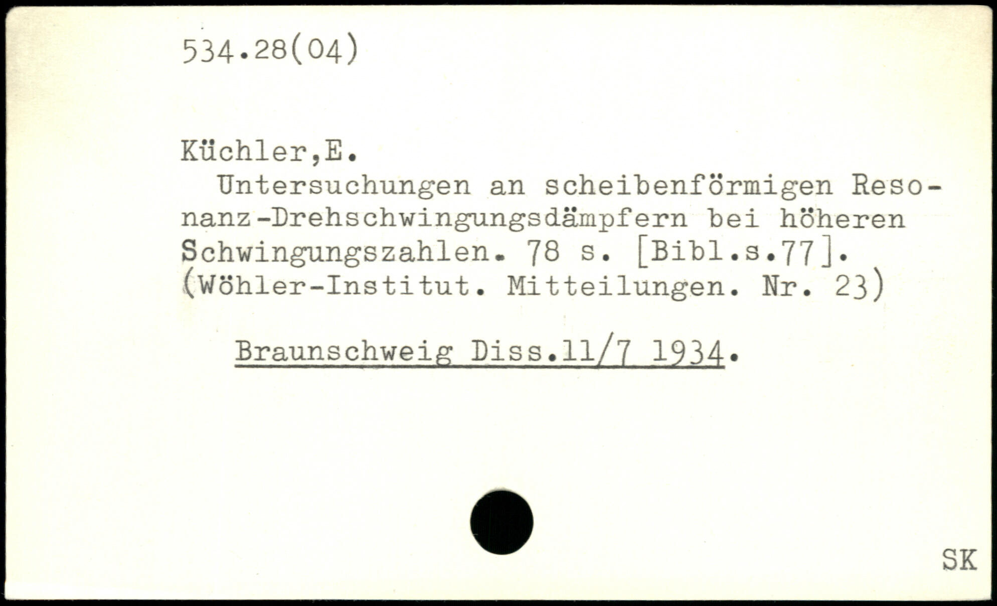 Untersuchungen an scheibenförmigen Resonanz -Drehs chwingungs dämpf ern hei höheren Schwingungszahlen.