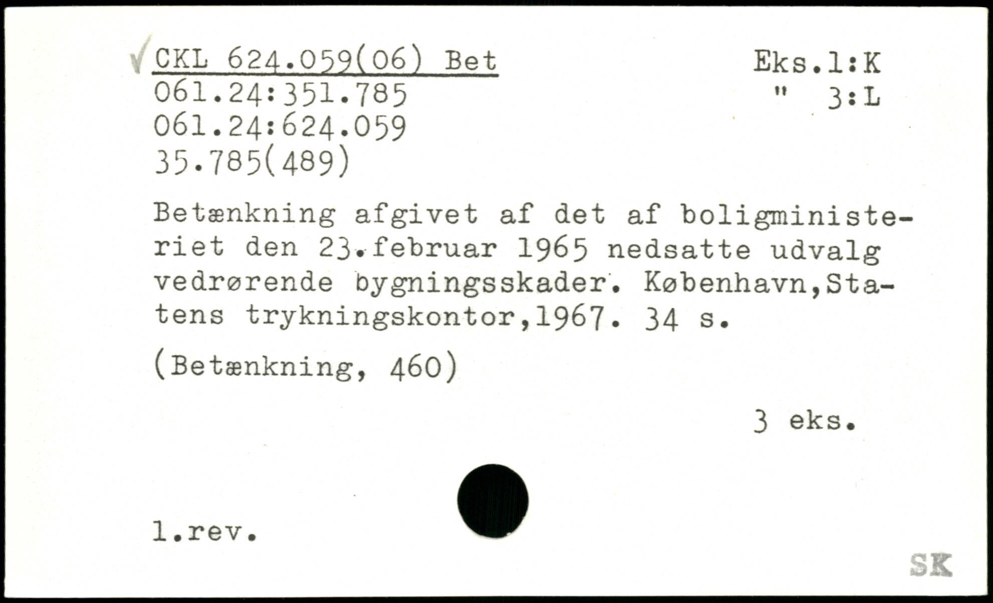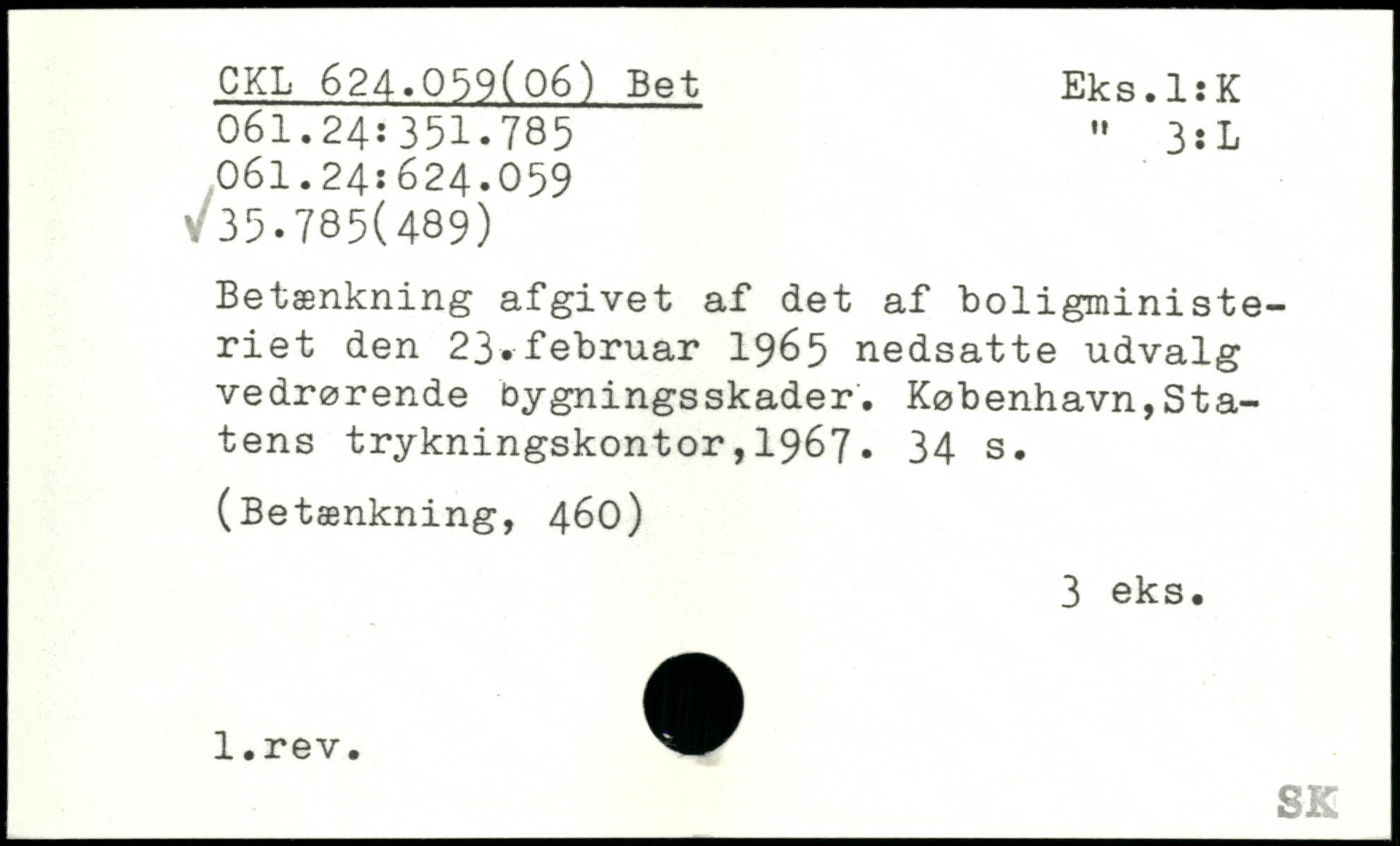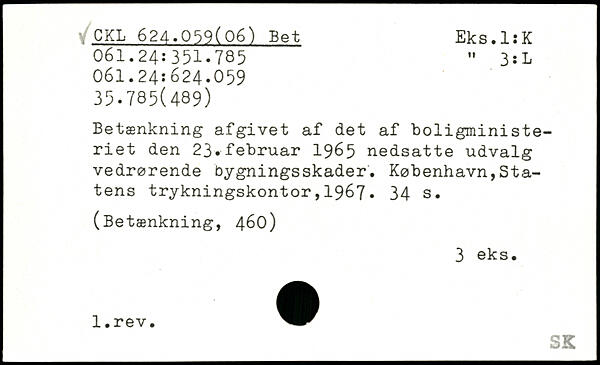 Betænkning afgivet af det af boligministeriet den 23.februar 1965 nedsatte udvalg vedrørende bygningsskader.