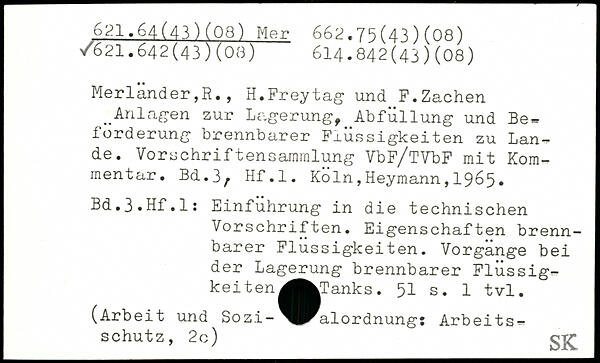 Merländer,R. , H.Freytag- und F.Zachen ^ Anlagen zur Lagerung, Abfüllung und Beförderung brennbarer Flüssigkeiten zu Lande. Vorschriftensammlung VbF/TVbF mit Kommentar.