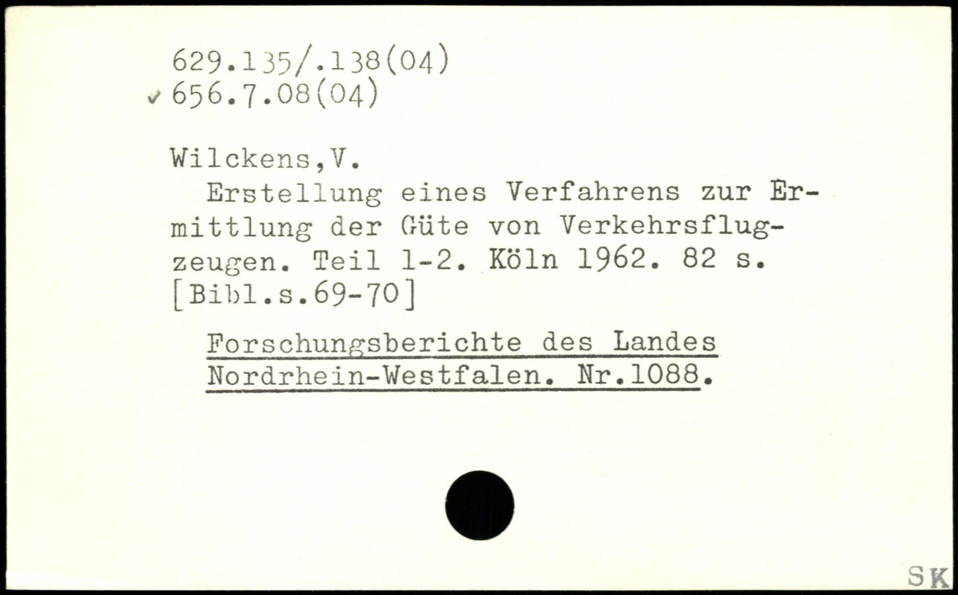 Erstellung eines Verfahrens zur Ermittlung der Güte von Verkehrs!lug-zeugen. Teil 1-2.