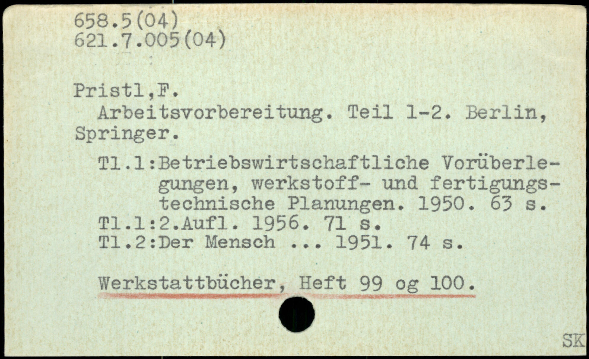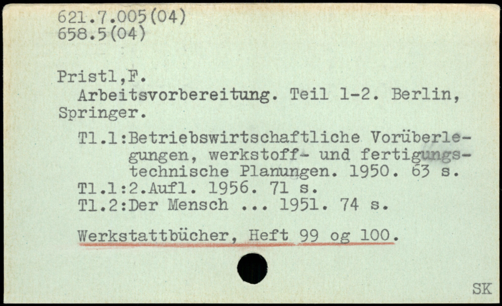 Arbeitsvorbereitung. Teil 1-2. Berlin, Springer. TI.1:Betriebswirtschaftliche Vorüberlegungen, Werkstoff- und fertigungstechnische Planungen. 1950.