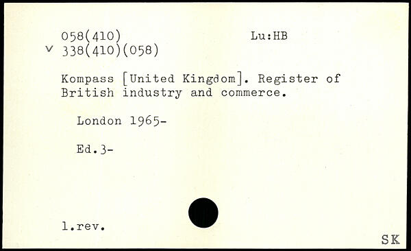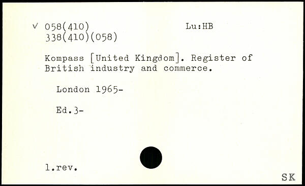 Kompass [United Kingdom]. Register of British industry and commerce.