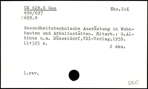 Gesundheitstechnische Ausrüstung in Wohnbauten und Arbeitsstätten. Mitarb.: G.A1-binus u.a.