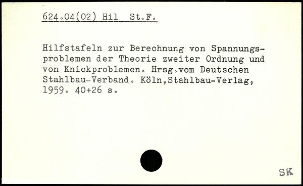 Hilfstafeln zur Berechnung von Spannungsproblemen der Theorie zweiter Ordnung und von Knickproblemen.