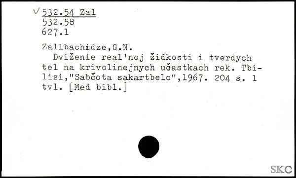 Dvizenie real'noj zidkosti i tverdych tel na krivolinejnych uoastkach rek. Tbilisi ,"Sabcota sakartbelo",1967.