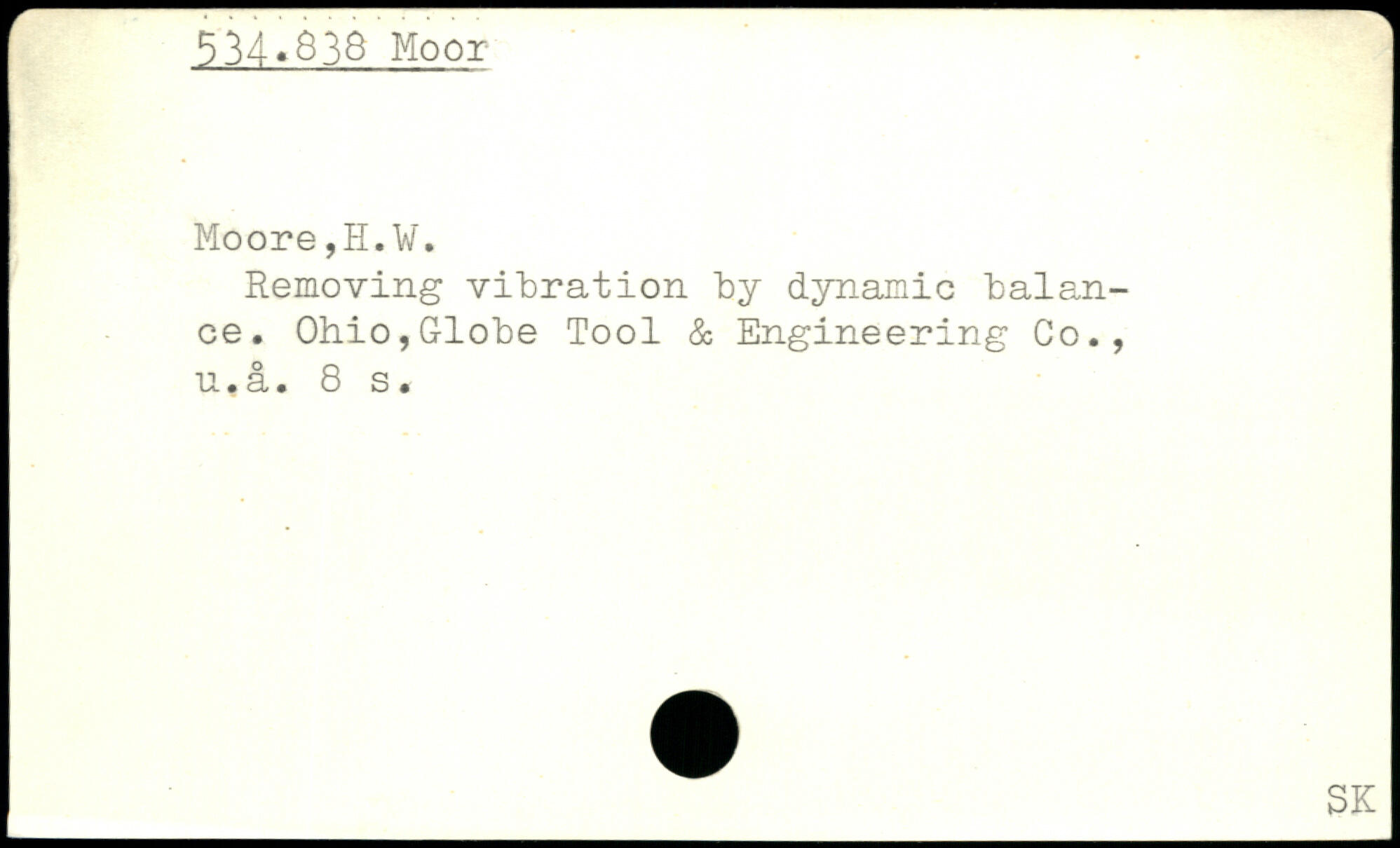 Removing vibration by dynamic balance. Ohio,Globe Tool & Engineering Co.