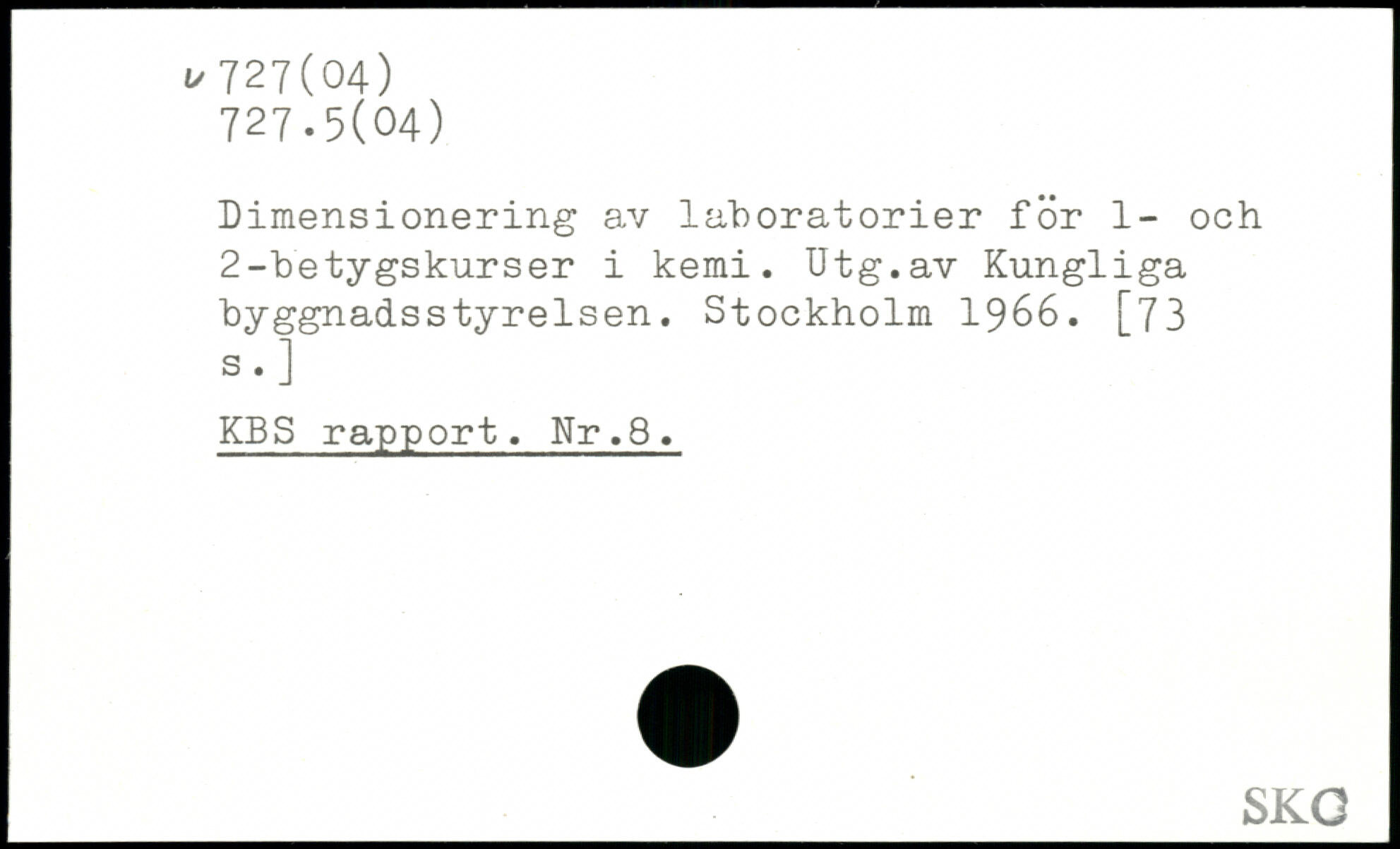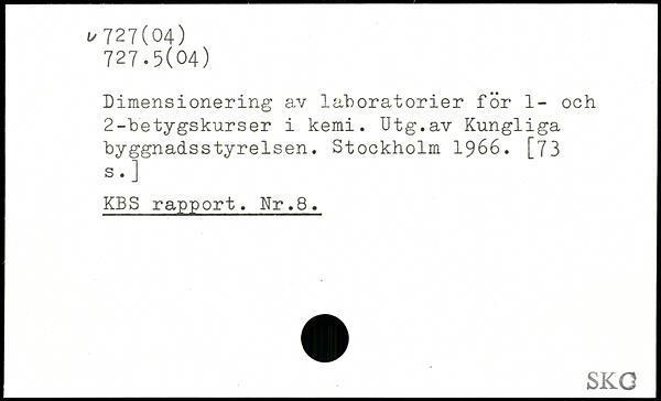Dimensionering av laboratorier för 1- och 2-betygskurser i kemi. Utg.av Kungliga byggnadsstyrelsen.