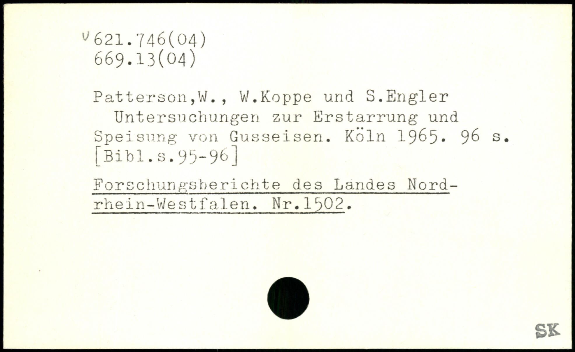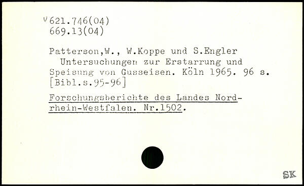 Patterson,W. , V/.Koppe und S.Engler Untersuchungen zur Erstarrung und Speisung von Gusseisen.