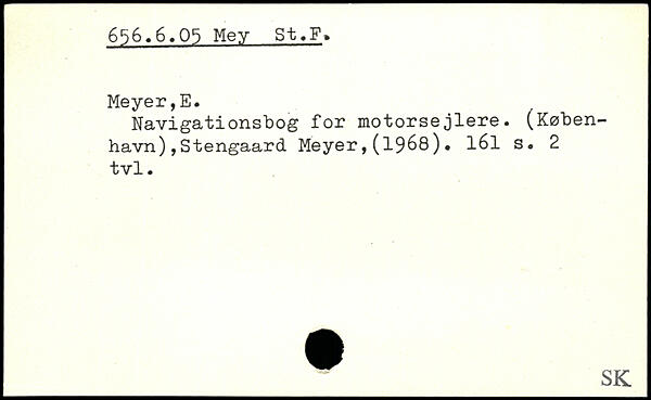 Navigationsbog for motorsejlere. (København) ,Stengaard Meyer,(1968). l6l s. 2 tvl. ~ SK