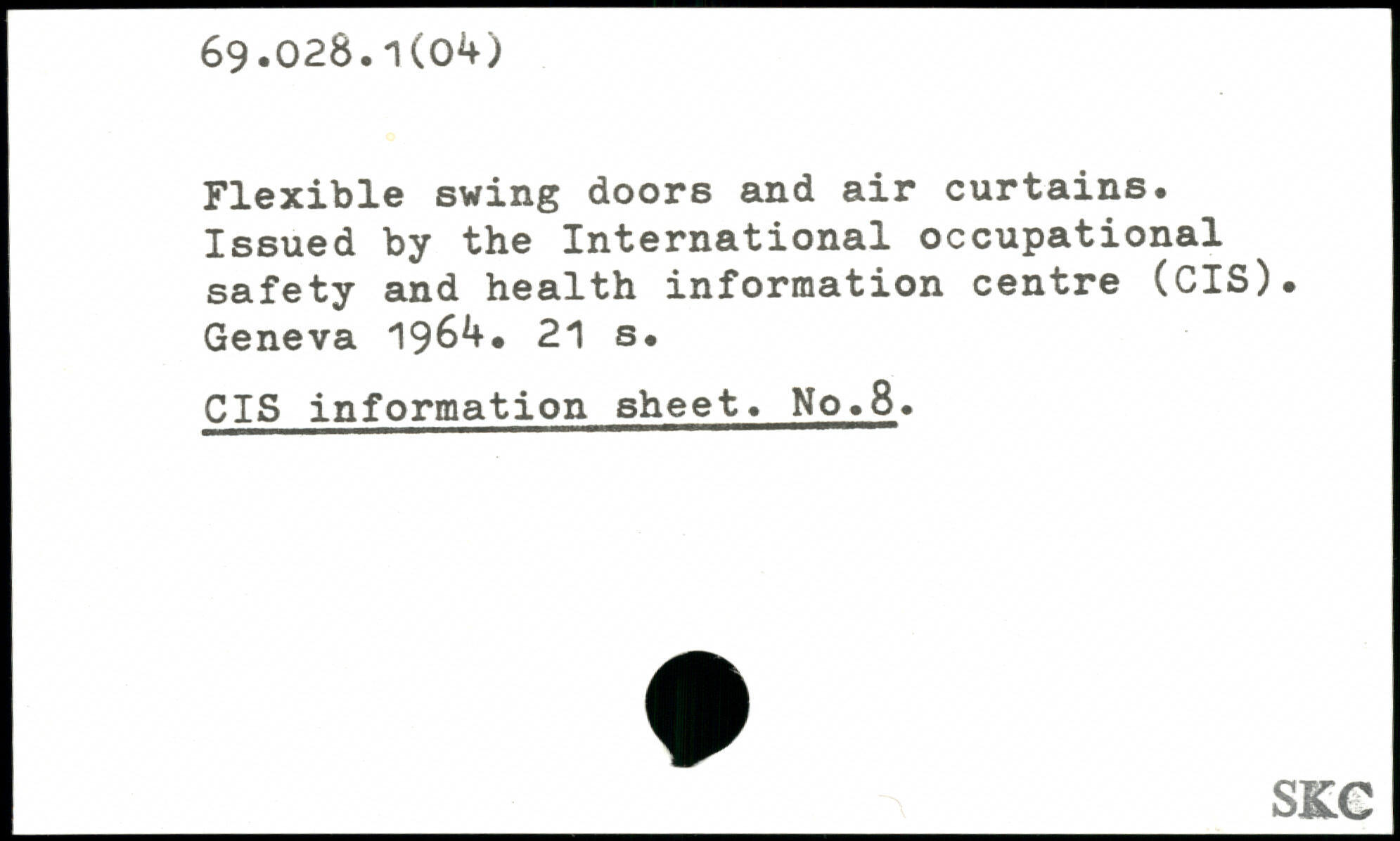Flexible swing doors and air curtains. Issued by the International occupational safety and health information centre (CIS). Geneva 196.+.