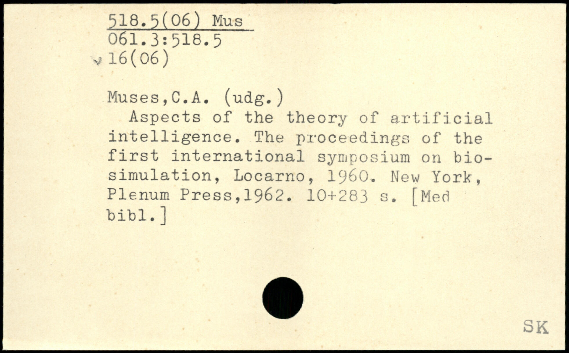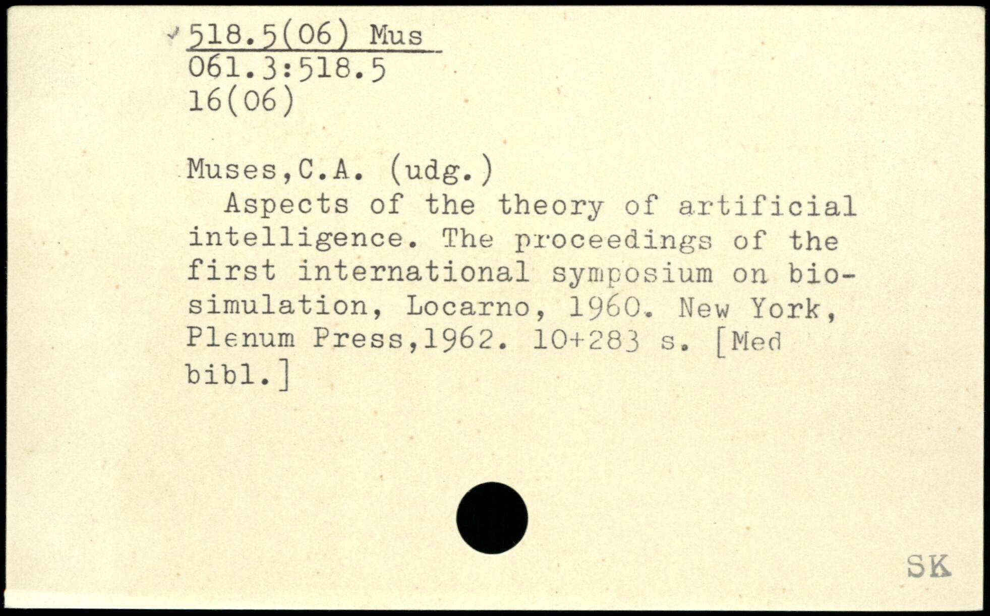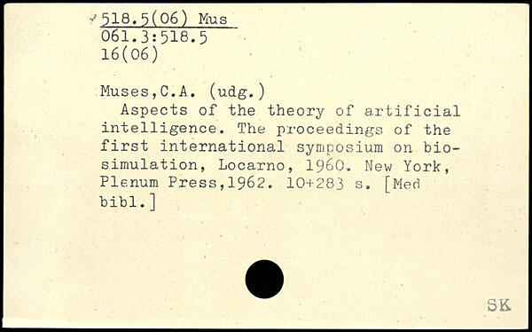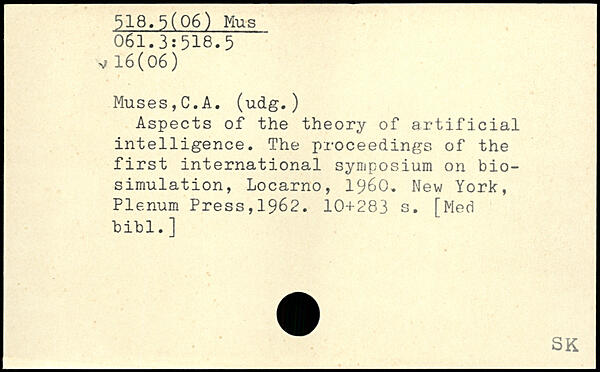 Aspects of the theory of artificial intelligence. The proceedings of the first international symposium on biosimulation, Locarno, 1960.
