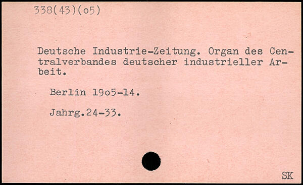 Deutsche Industrie-Zeitung. Organ des Centralverbandes deutscher industrieller Arbeit. Berlin 19o5-14. Jahrg.24-33.