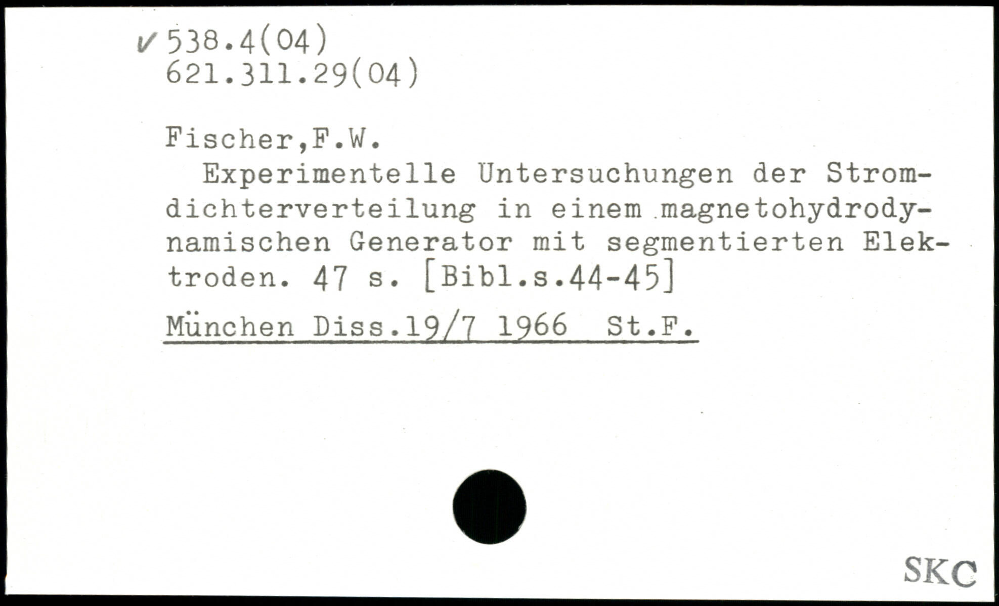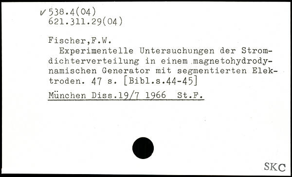 Experimentelle Untersuchungen der Stromdichterverteilung in einem magnetohydrody-namischen Generator mit segmentierten Elektroden.