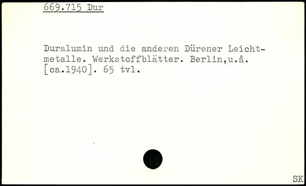 Duralumin und die anderen Dürener Leicht-metalle. Verkstoffblätter. Berlin,u.ä.