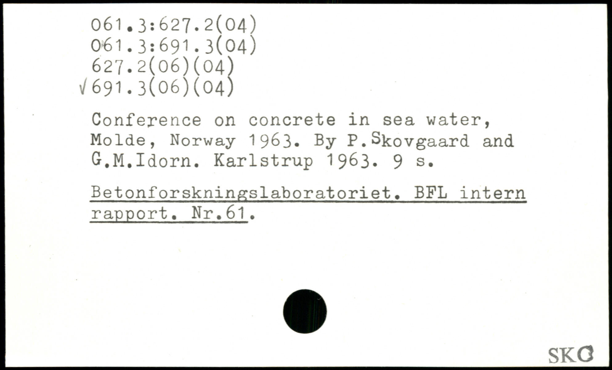 Conference on concrete in sea water, Molde, Norway 1963- By P.Skovgaard and G.M.Idorn. Karlstrup 1963-