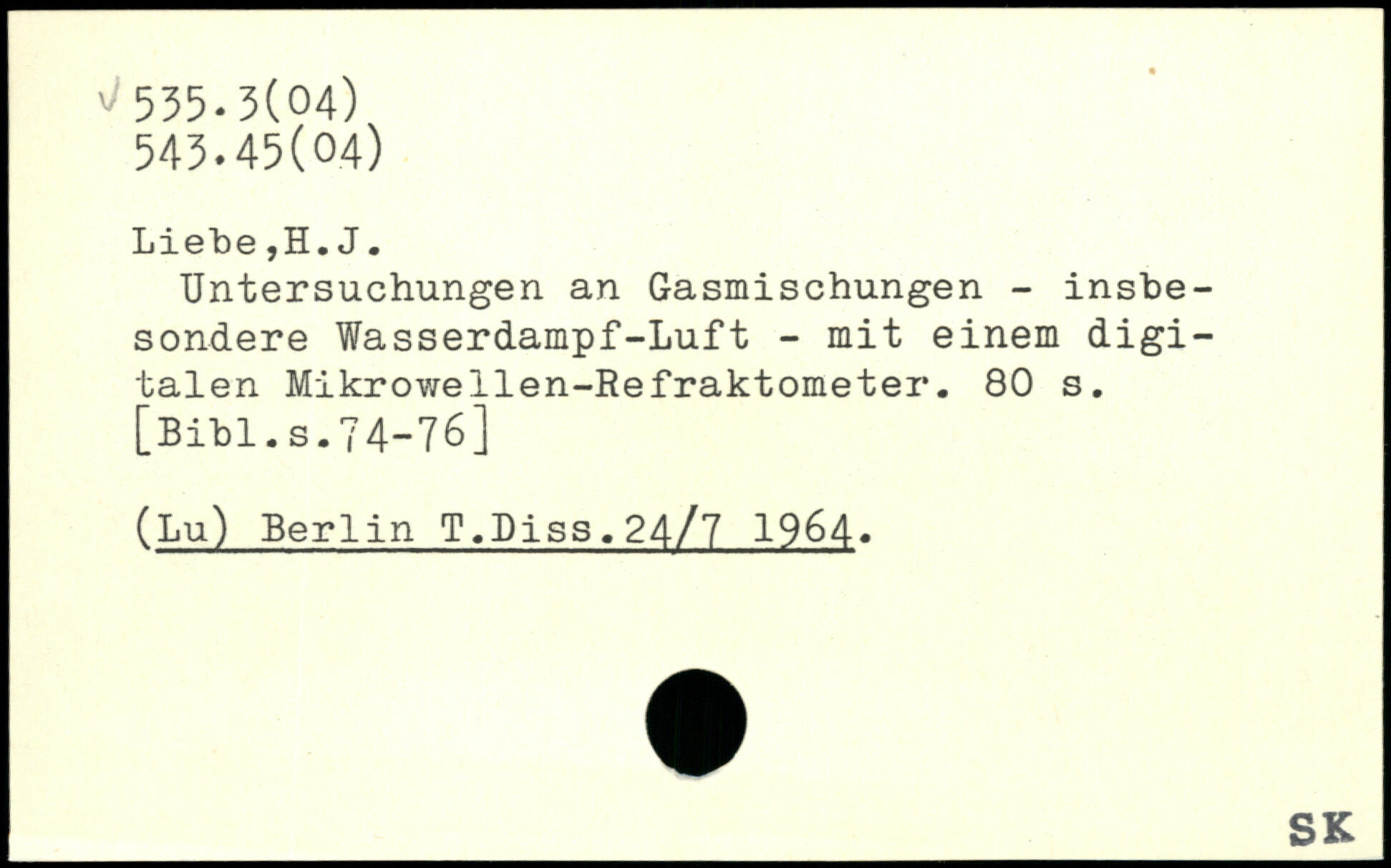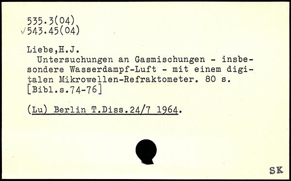 Untersuchungen an Gasmischungen - insbesondere Wasserdampf-Luft - mit einem digitalen Mikrowellen-Refraktometer.