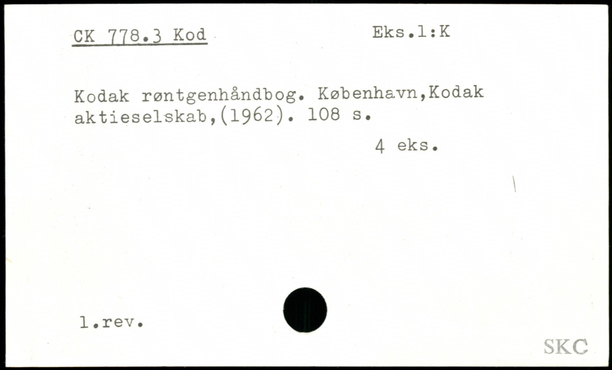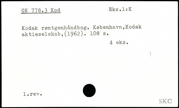 Kodak røntgenhåndbog. København,Kodak aktieselskab,(1962).