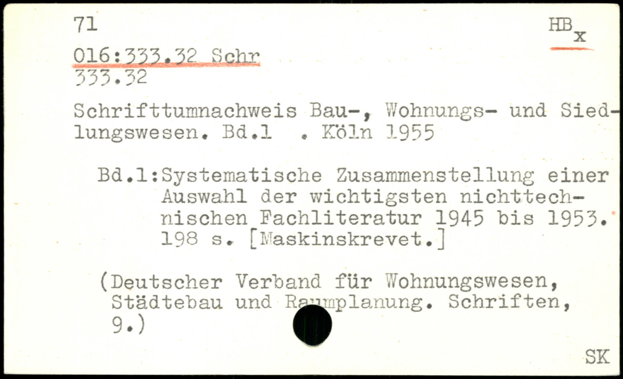 Schrifttumnachweis Bau-, Wohnungs- und Siedlungswesen. Bd.l.