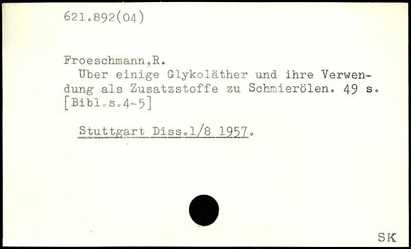 Fr o e s chmann ? R. Uber einige Glykoläther und ihre Verwendung als Zusatzstoffe zu Schmierölen.