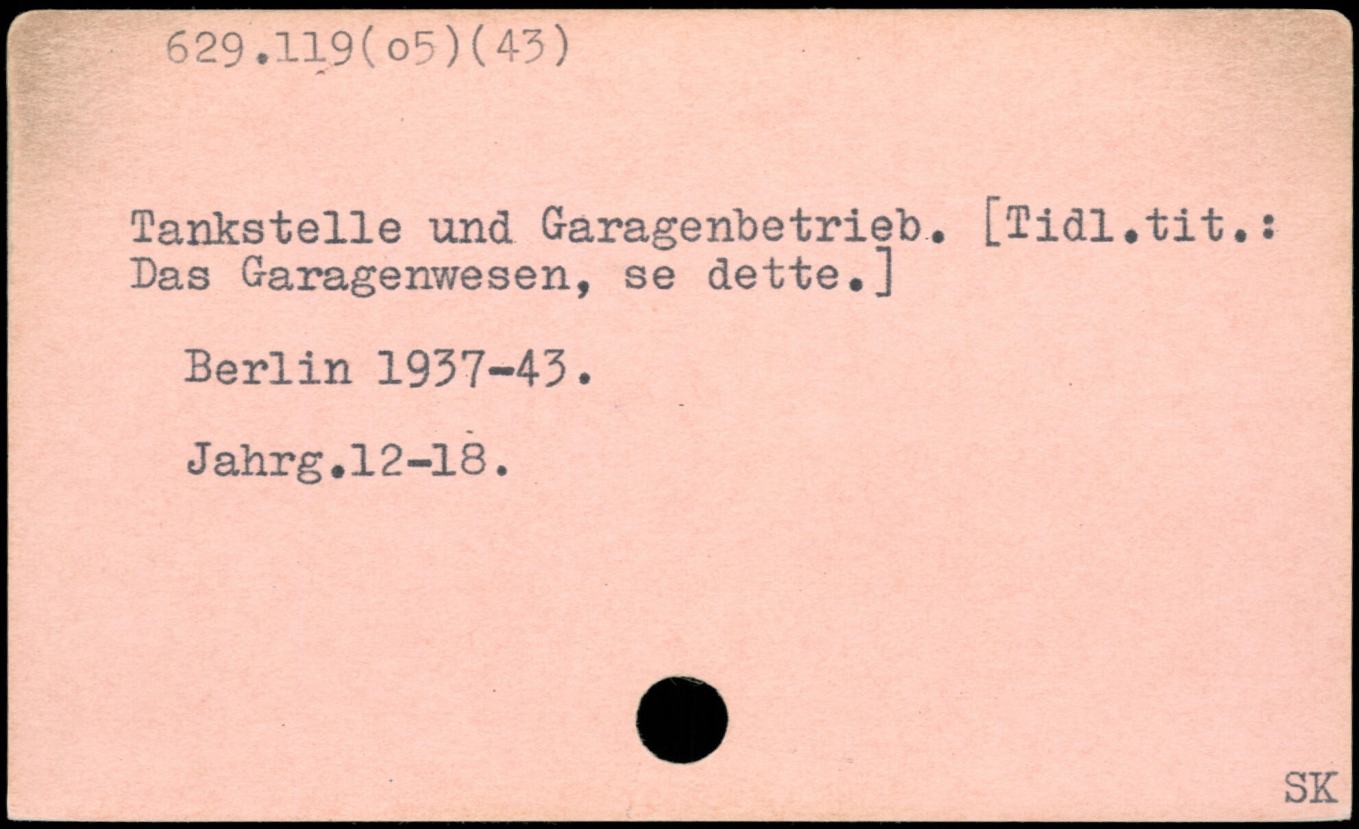 Tankstelle und Garagenbetrieb. [Tidl.tit.: Das Garagenwesen, se dette.]