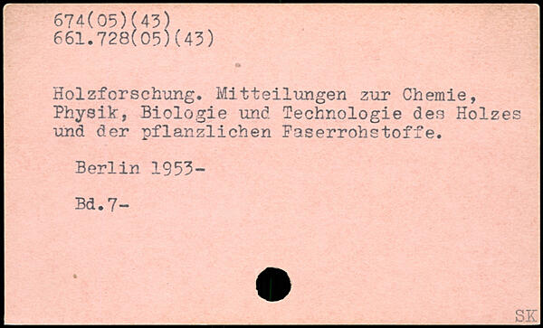 Holzforschung. Mitteilungen zur Chemie, Physik, Biologie und. Technologie des Holzes und der pflanzlichen Faserrohstoffe.