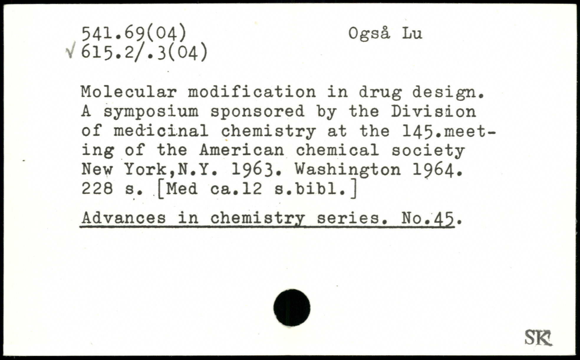 Molecular modification in drug design. A symposium sponsored by the Division of medicinal chemistry at the 145.nieet-ing of the American chemical society New York,N.Y. 19^3