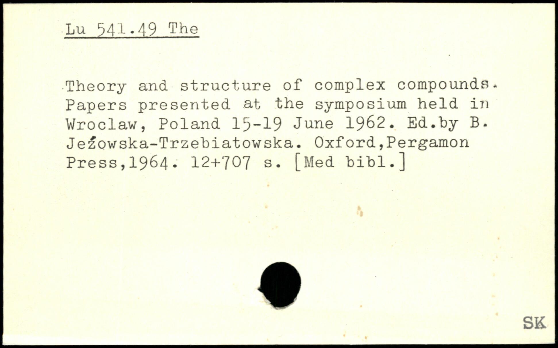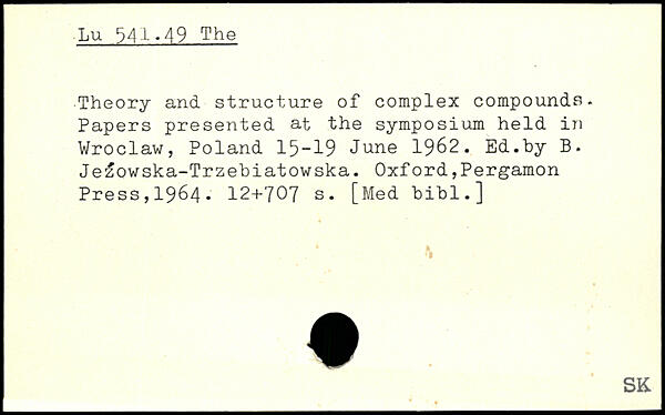 Theory and structure of complex compounds. Papers presented at the symposium held in Wroclaw, Poland 15-19 June 1962. Ed.by B. Jezowska-Trzebiatowska.