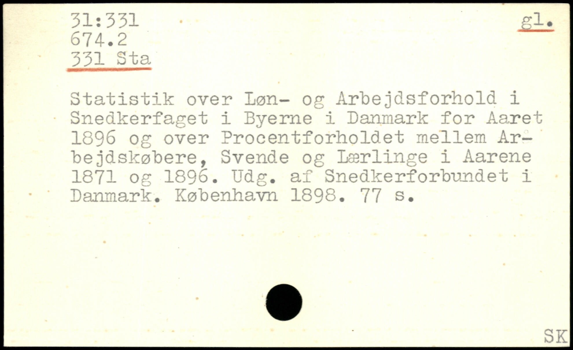 Statistik over løn- og Arbejdsforhold i Snedkerfaget i Byerne i Danmark for Aaret 1896 og over Procentforholdet mellem Arbe jdskøbere, Svende og lærlinge i Aarene 1871 og 1896. Udg. af Snedkerforbimdet i Danmark.